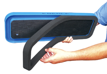In una fusione speciale di materiale plastico con sede per bordo in gomma mousse facilmente sostituibile. Questo nuovo materiale unisce al contenuto peso specifico, una ,elevatissima solidità strutturale.